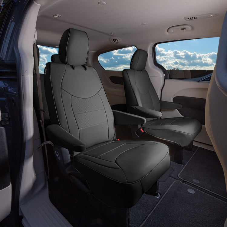 Chrysler Pacifica - 2017 - 2024 - 2nd Row Set Seat Covers - Black Faux Leather