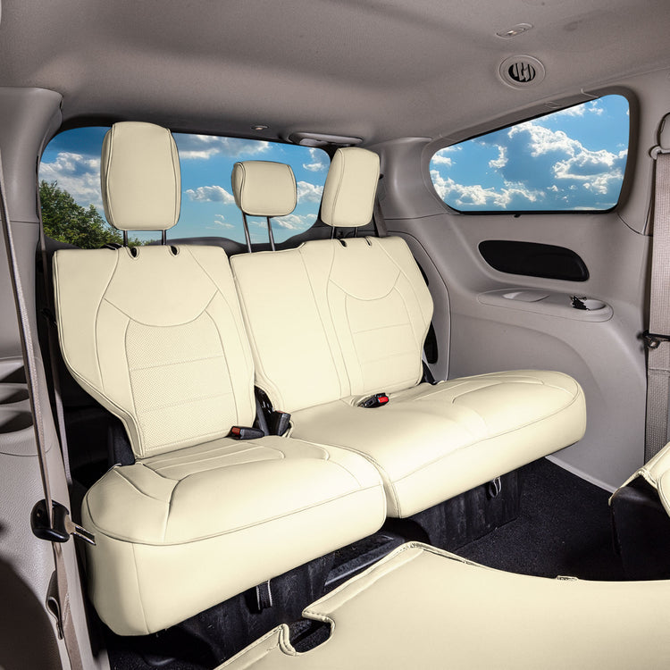 Chrysler Pacifica - 2017 - 2024 - 3rd Row Set Seat Covers - Beige Faux Leather