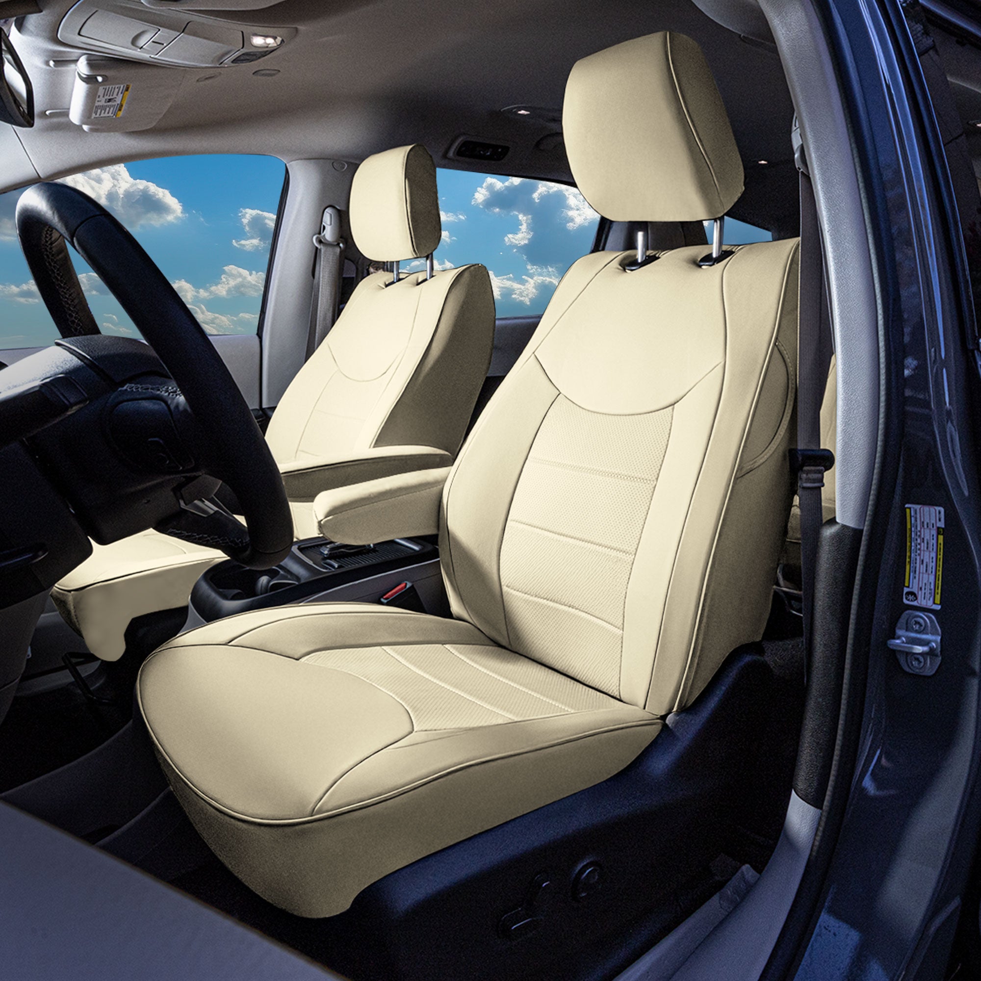 Chrysler Pacifica - 2017 - 2024 - Front Set Seat Covers - Beige Faux Leather (DVD access included, no armrest)
