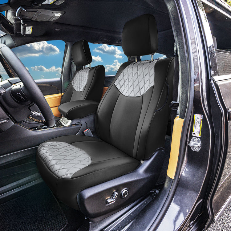 Chrysler Pacifica - 2017 - 2024 - Front Set Seat Covers - Gray Ultraflex Neoprene (DVD access & armrest included)