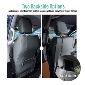 DVD ACCESS & ARMREST INCLUDED: Tailored Chrysler Pacifica seat covers with DVD access and armrest openings, designed for comfort, convenience, and a seamless factory-like fit.