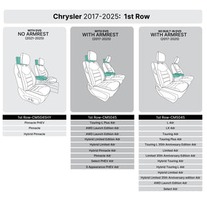 CUSTOM FIT SEAT COVERS FOR CHRYSLER PACIFICA: Engineered specifically for the 2017, 2018, 2019, 2020, 2021, 2022, 2023, & 2024 Chrysler Pacifica's 3-row configuration, these covers offer a precise fit for each seat to ensure a sleek, integrated look from front to third row.