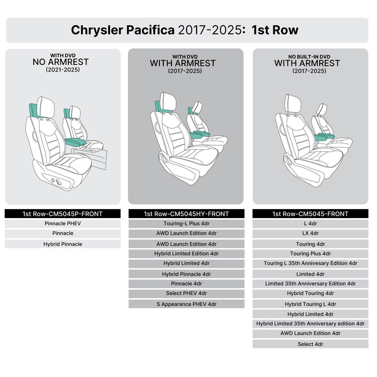 Chrysler Pacifica - 2017 - 2024 - Front Set Seat Covers - Gray Faux Leather (DVD access included, no armrest)