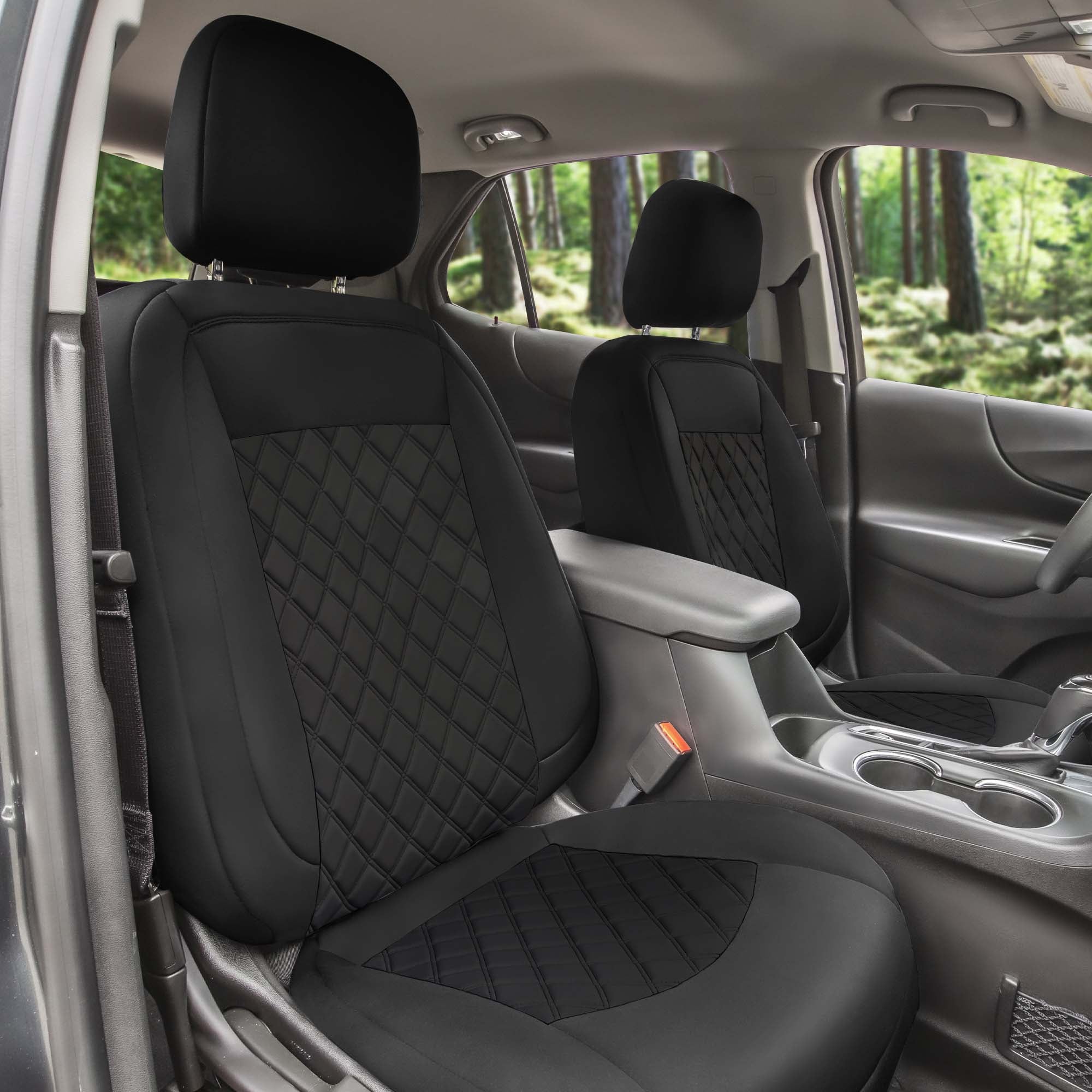 CUSTOM FIT SEAT COVERS FOR CHEVROLET EQUINOX: Tailored to the exact specifications of your Chevy Equinox, these seat covers undergo precision cutting, ensuring a perfect fit. The custom tailoring enhances the aesthetics of your car’s interior, creating a seamless and polished look that complements the design of your Chevy.
