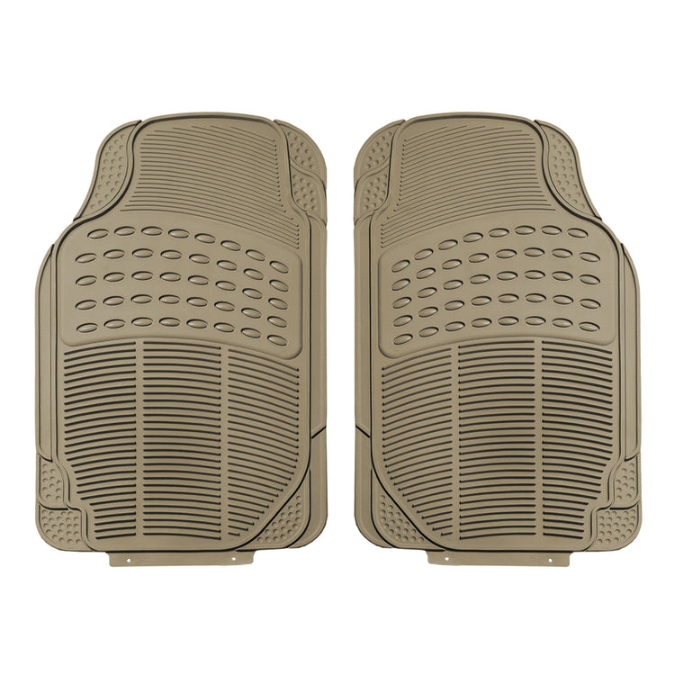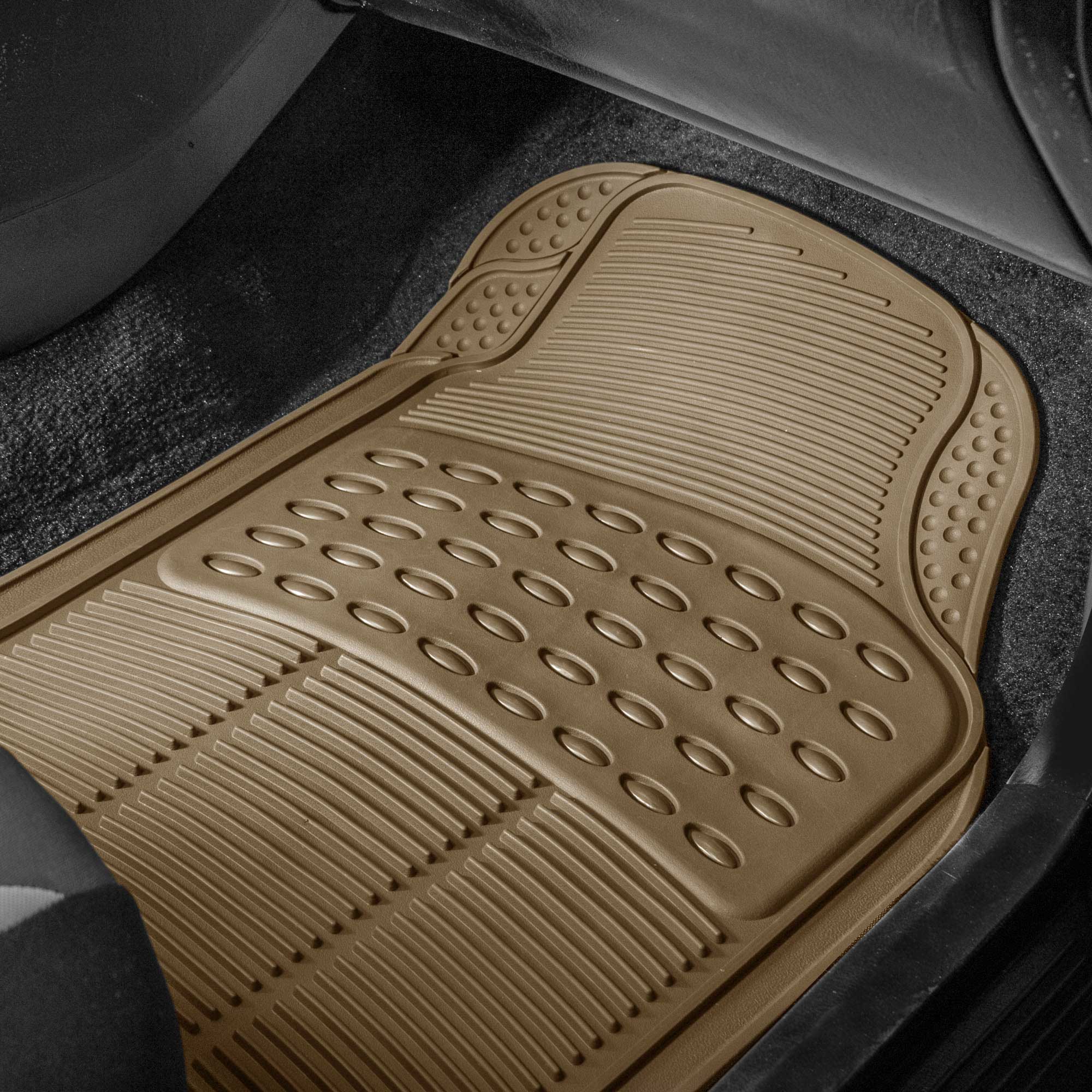 UNIVERSAL FIT - This set of rubber car floor mats was carefully designed to fit most vehicles. These floor mats are made of flexible material that molds to the shape of your car's interior, providing a semi-customizable fit.