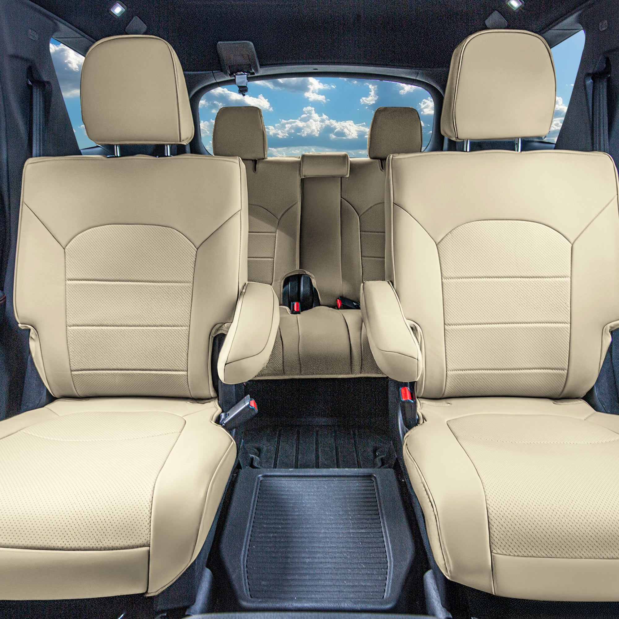 Honda Pilot 2023 - 2025 - 2nd Row Seat Covers - Solid Beige Faux Leather