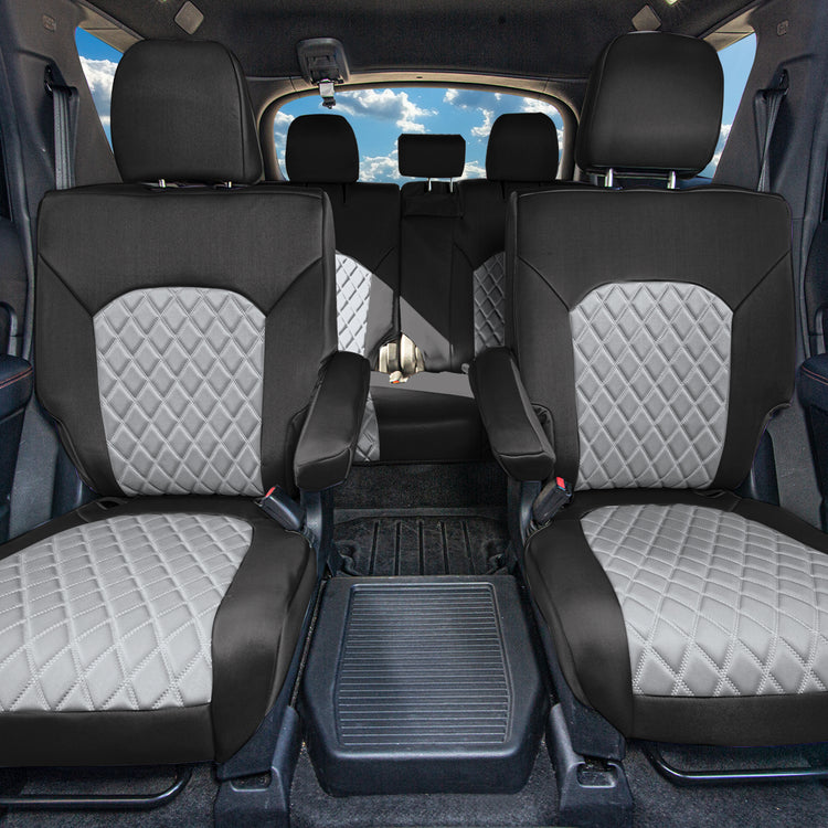 CUSTOM FIT SEAT COVERS FOR HONDA PILOT: Precision-crafted to match the contours of your 2023, 2024, 2025 Honda Pilot’s seats for a sleek, glove-like fit that upgrades your interior.