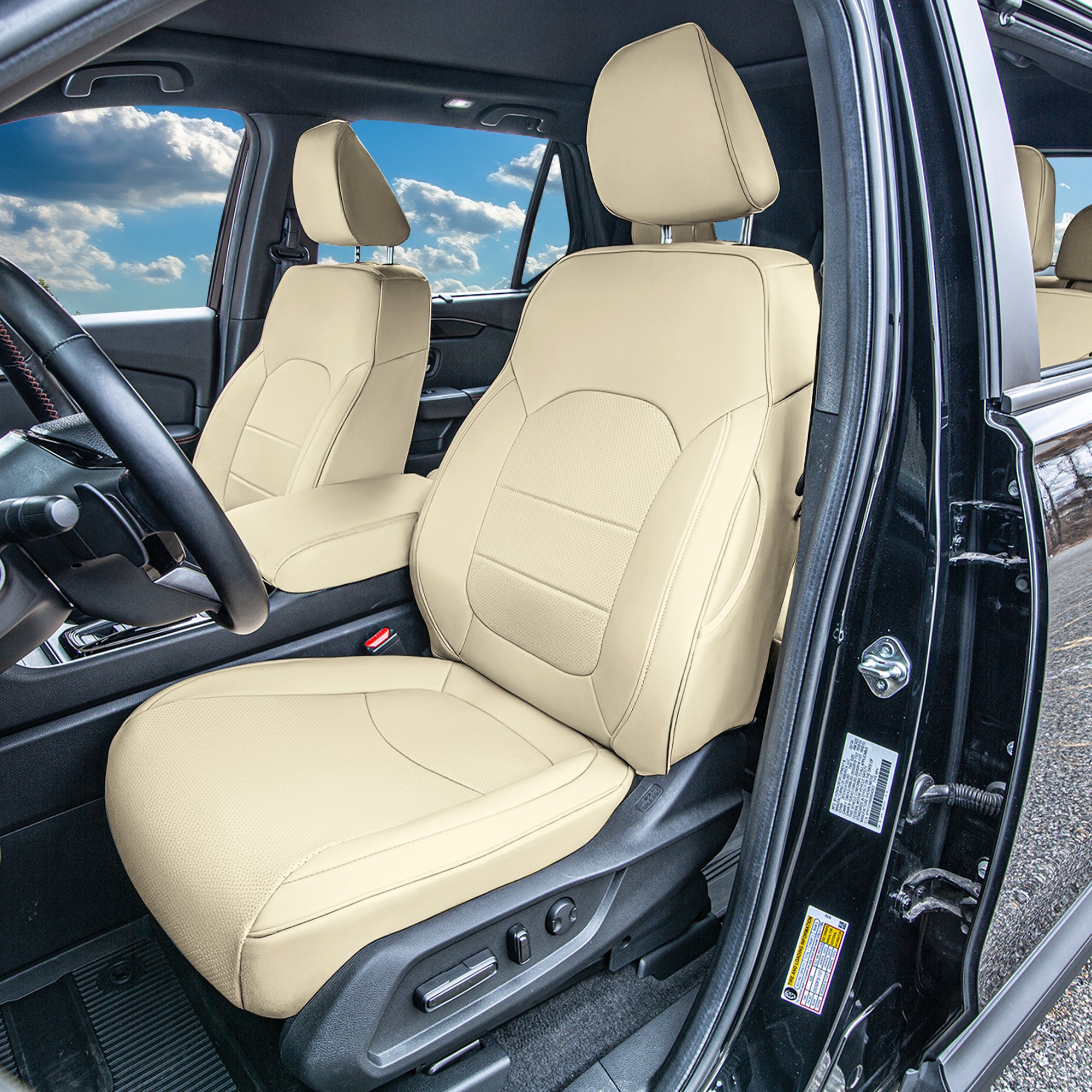 AIRBAG-COMPATIBLE COVERS FOR YOUR PILOT: The front seat covers are specially stitched to allow the safe deployment while maintaining full safety compliance for you and your family.