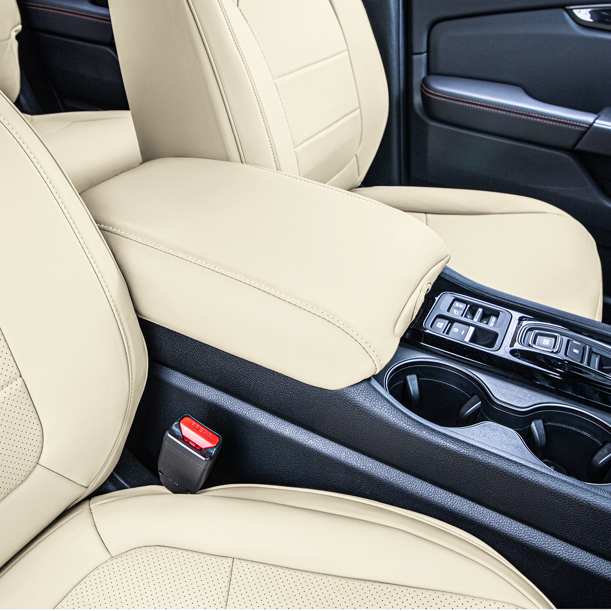 INCLUDES MATCHING FRONT CENTER CONSOLE COVER: Protect your Pilot everywhere with a custom faux leather cover for the front center console. This cover protects high-contact surfaces and completes the look.