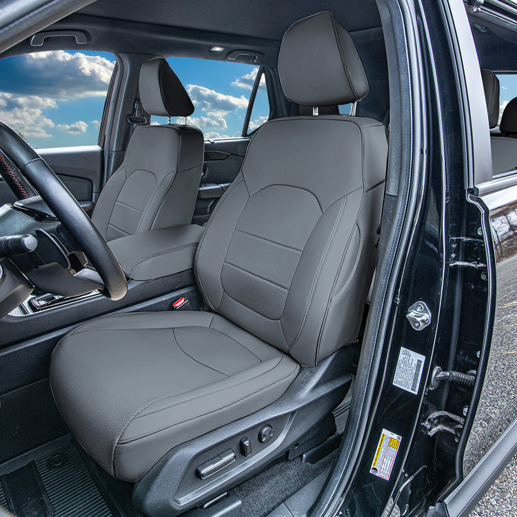 PREMIUM FAUX LEATHER FOR STYLE AND PROTECTION: Crafted from waterproof, easy-to-clean faux leather, these seat covers resist spills, scuffs, and everyday wear while giving your Pilot a sleek, upscale finish.