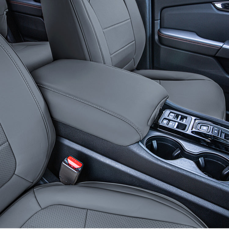INCLUDES MATCHING FRONT CENTER CONSOLE COVER: Protect your Pilot everywhere with a custom faux leather cover for the front center console. This cover protects high-contact surfaces and completes the look.
