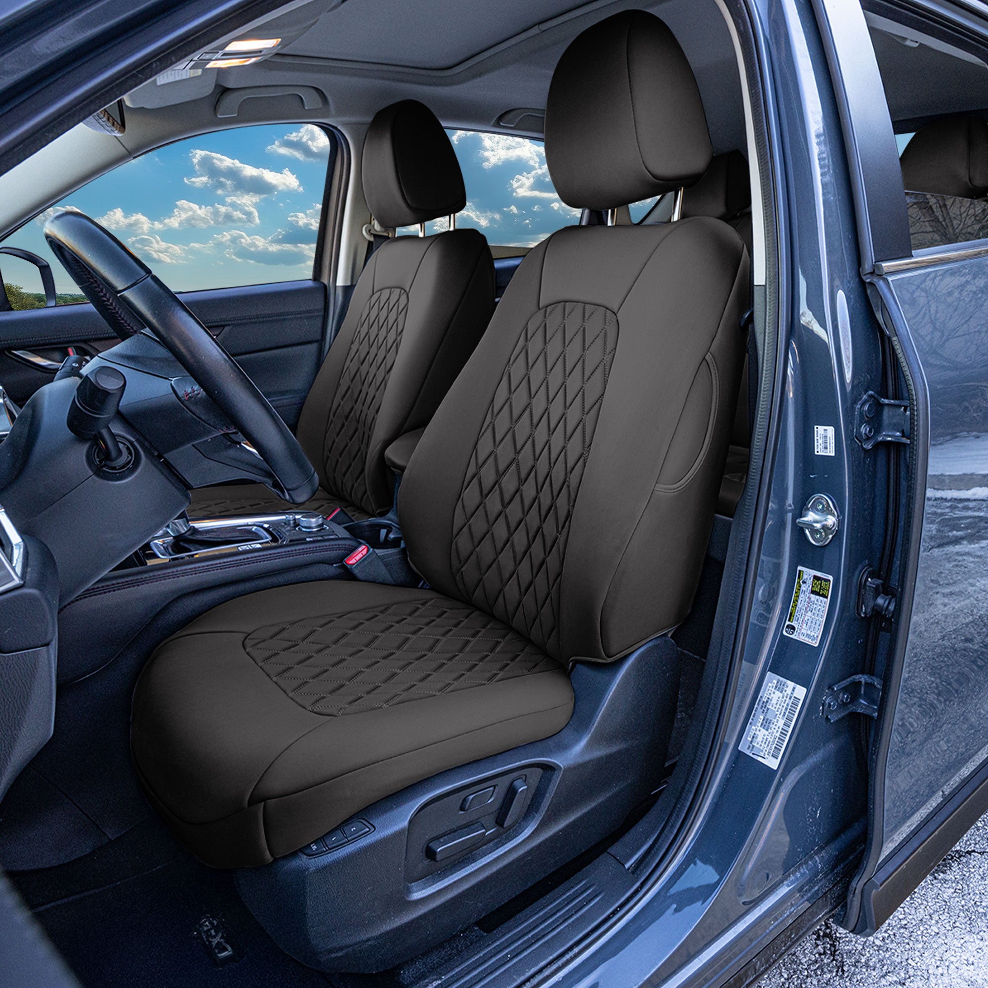 Upgrade your Mazda CX-5's interior with our premium Neoprene Full Set Seat Covers, meticulously tailored to fit 2017, 2018, 2019, 2020, 2021, 2022, 2023, 2024, and 2025 models. Designed to provide both style and functionality, these seat covers offer a custom fit that enhances the look of your SUV while protecting your seats from daily wear and tear. Crafted from high-quality neoprene, the covers deliver exceptional durability, water resistance, and comfort, making them ideal for families, outdoor enthusiasts, and daily commuters alike. Neoprene’s soft yet rugged texture provides a comfortable seating experience while maintaining its shape over time. Whether you’re heading to the beach, tackling off-road adventures, or simply running errands, these seat covers keep your car’s interior protected and looking pristine.