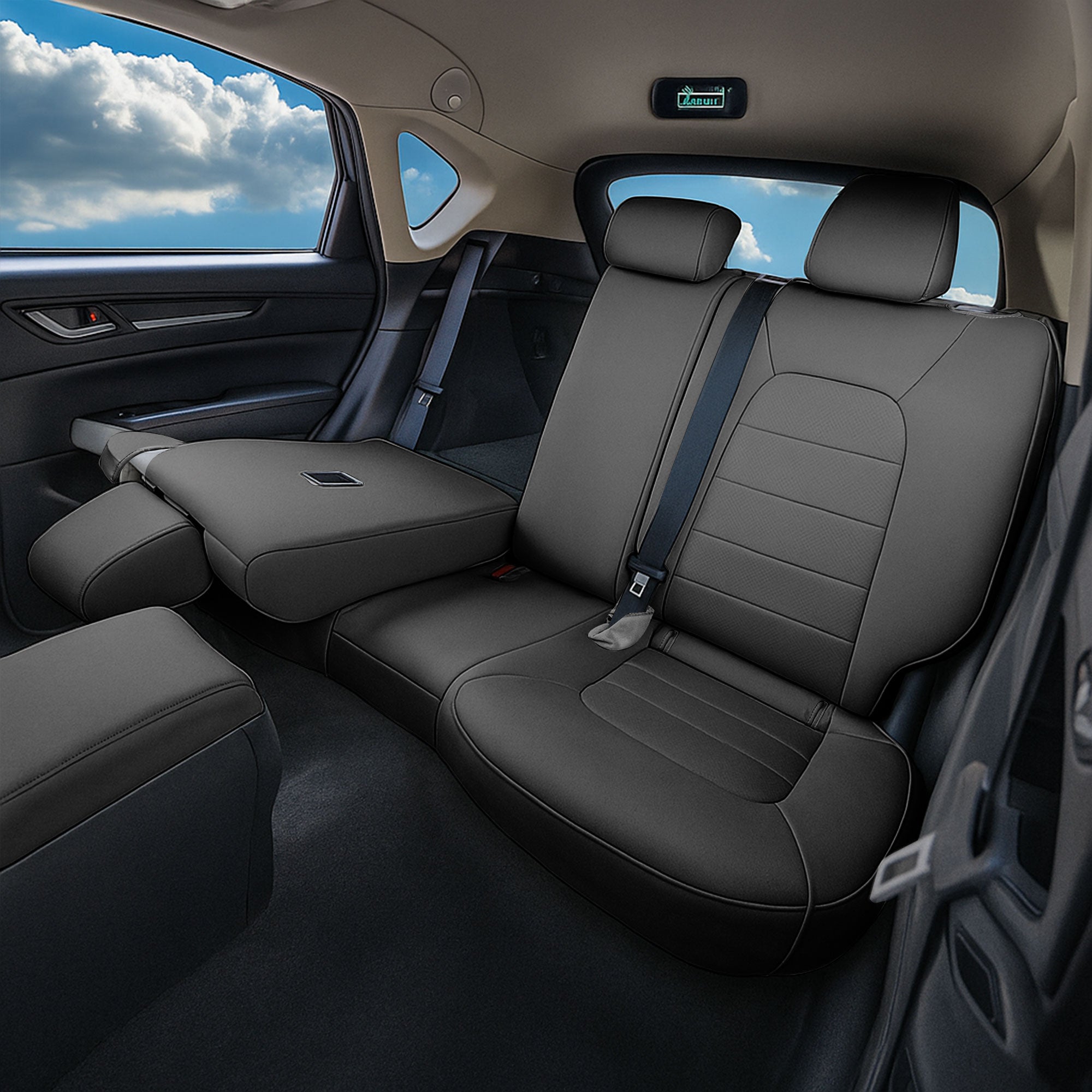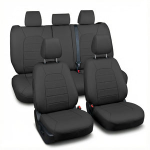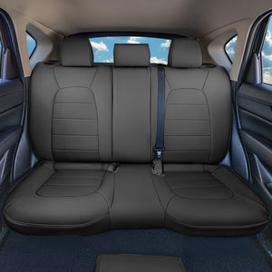 Tailored for functionality and convenience, these seat covers accommodate the unique seat configuration of the Mazda CX-5. The rear seat covers are designed for a 40/20/40 split backrest, with three individual backrest covers and a solid bottom seat cover, ensuring seamless coverage without compromising fit. The covers are compatible with removable headrests in both the front and rear, and the water-resistant faux leather material provides reliable protection against spills and dirt. Available in black, gray, and beige, these seat covers not only protect but also complement your vehicle’s interior, adding a touch of sophistication. Easy to clean with just a damp cloth, they are designed to withstand daily use while maintaining their premium look. Experience the perfect blend of protection, comfort, and style with our expertly crafted Faux Leather Full Set Seat Covers for the Mazda CX-5.