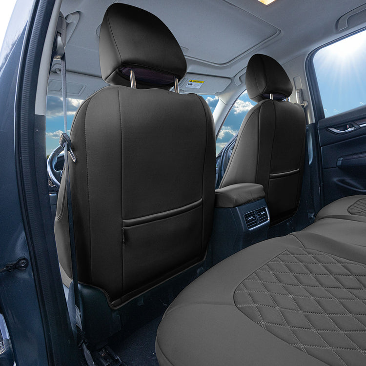 Upgrade your Mazda CX-5's interior with our premium Neoprene Full Set Seat Covers, meticulously tailored to fit 2017, 2018, 2019, 2020, 2021, 2022, 2023, 2024, and 2025 models. Designed to provide both style and functionality, these seat covers offer a custom fit that enhances the look of your SUV while protecting your seats from daily wear and tear. Crafted from high-quality neoprene, the covers deliver exceptional durability, water resistance, and comfort, making them ideal for families, outdoor enthusiasts, and daily commuters alike. Neoprene’s soft yet rugged texture provides a comfortable seating experience while maintaining its shape over time. Whether you’re heading to the beach, tackling off-road adventures, or simply running errands, these seat covers keep your car’s interior protected and looking pristine.