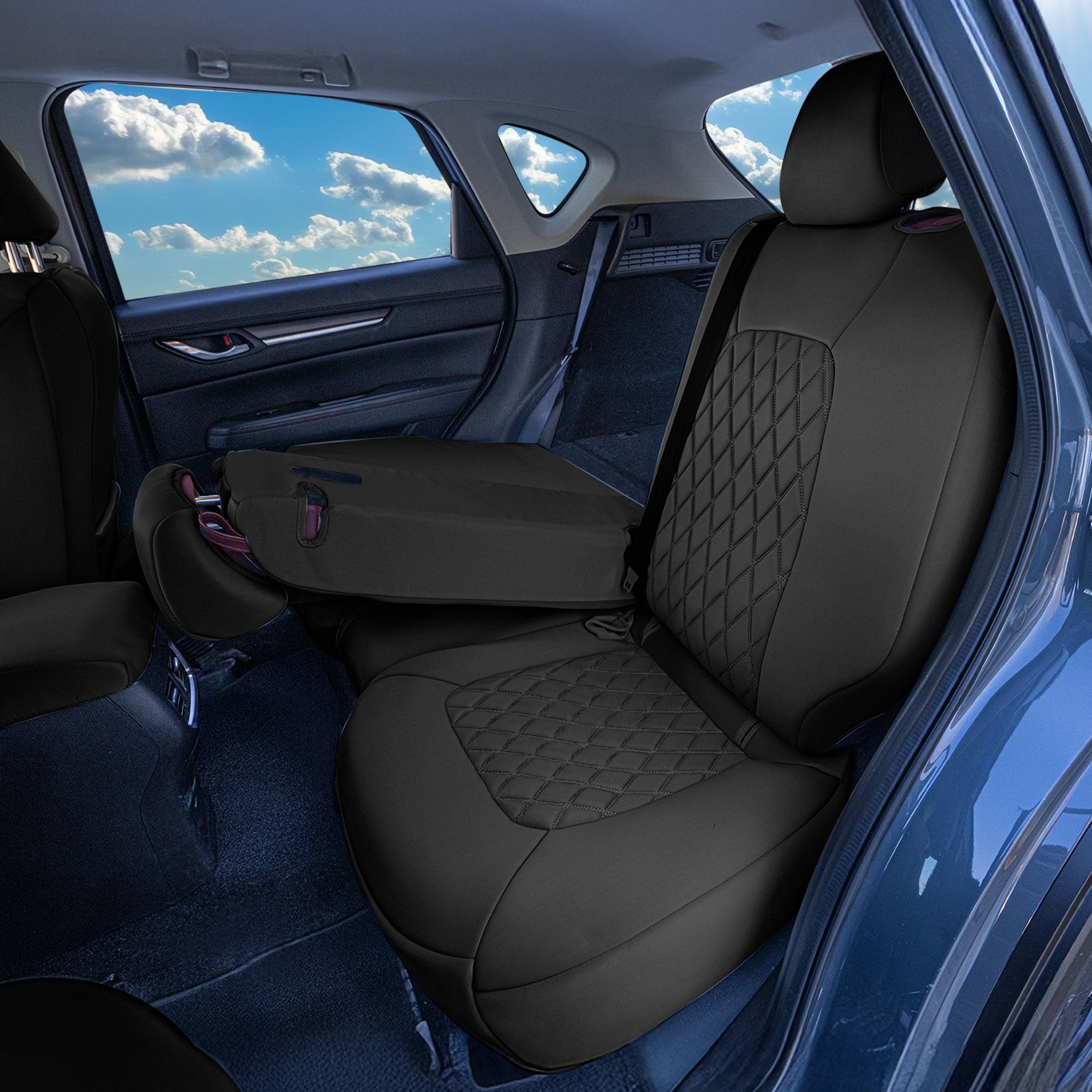 Upgrade your Mazda CX-5's interior with our premium Neoprene Rear Set Seat Covers, meticulously tailored to fit 2017, 2018, 2019, 2020, 2021, 2022, 2023, 2024, and 2025 models. Designed to provide both style and functionality, these seat covers offer a custom fit that enhances the look of your SUV while protecting your seats from daily wear and tear. Crafted from high-quality neoprene, the covers deliver exceptional durability, water resistance, and comfort, making them ideal for families, outdoor enthusiasts, and daily commuters alike. Neoprene’s soft yet rugged texture provides a comfortable seating experience while maintaining its shape over time. Whether you’re heading to the beach, tackling off-road adventures, or simply running errands, these seat covers keep your car’s interior protected and looking pristine.