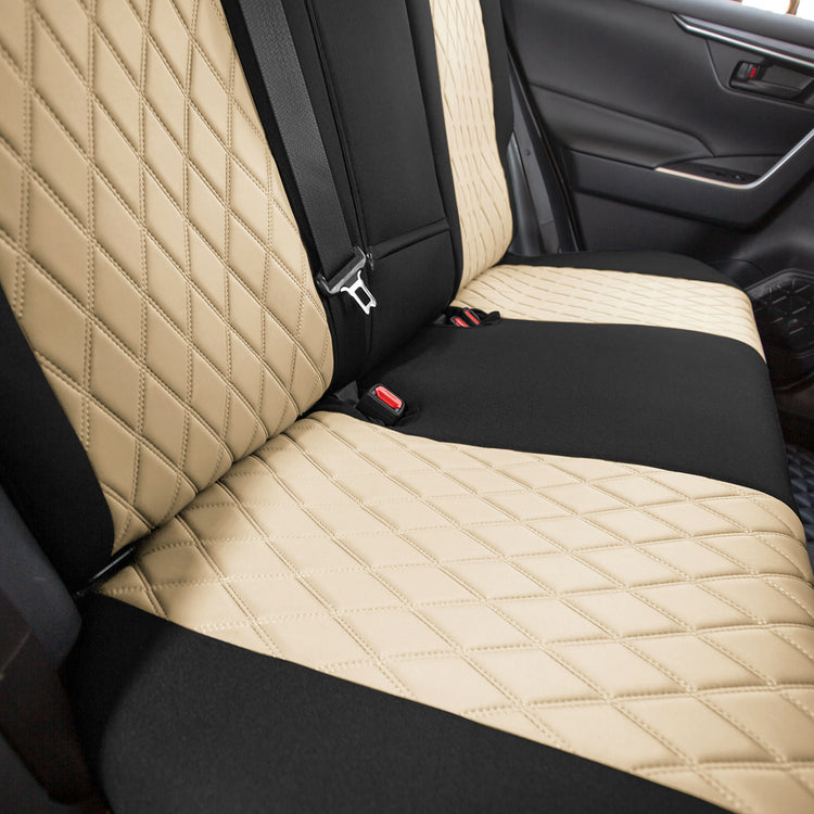 SPLIT BENCH REAR SEAT COVERS: The split bench design of these seat covers accommodates the 60/40 split bench on the rear seat of your RAV4, maintaining full functionality, complete coverage, and protection. This split design also allows you to fully use the rear seat's center cupholder/armrest.