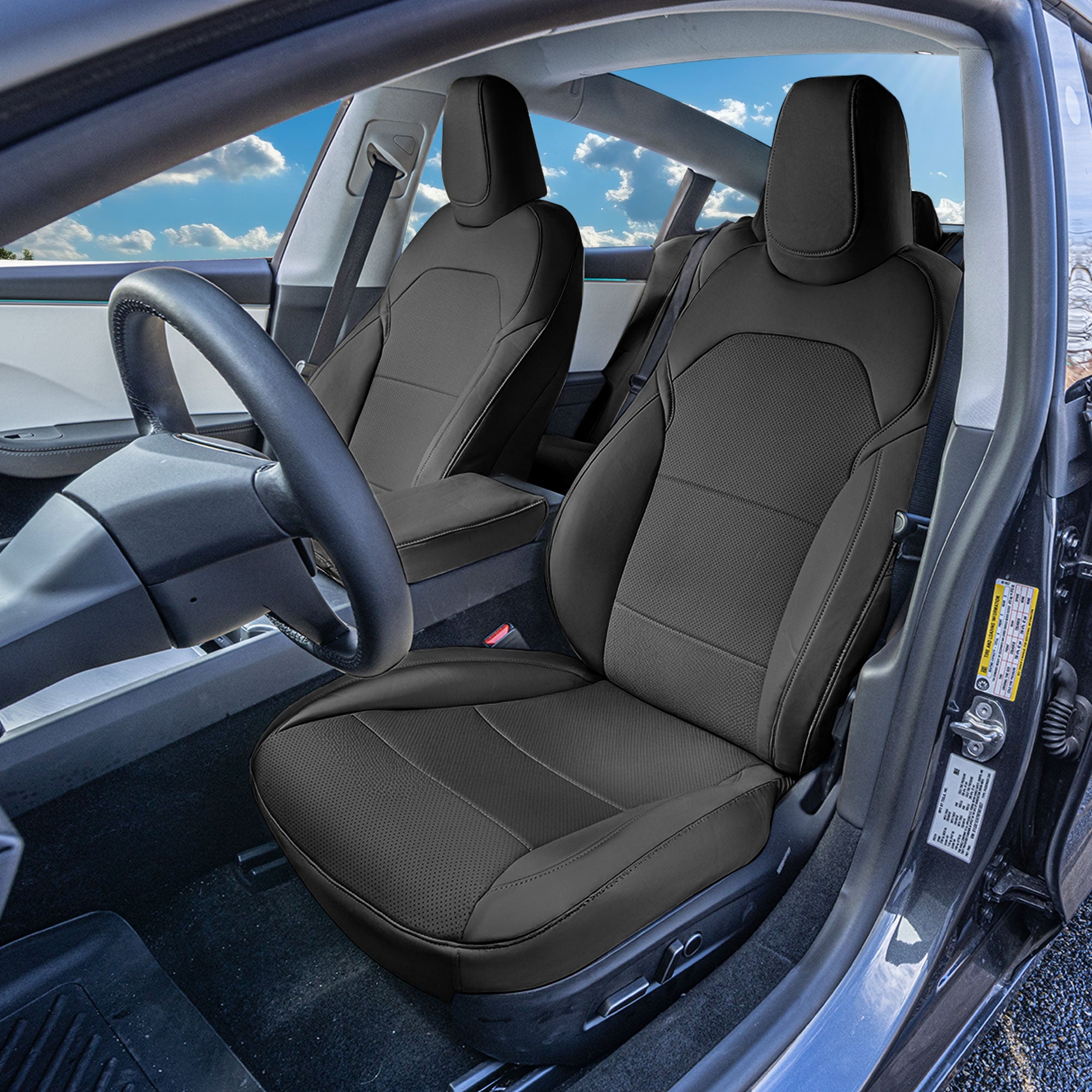 Tesla Model 3 2024 - 2026 - Full Set Seat Covers - Black Faux Leather