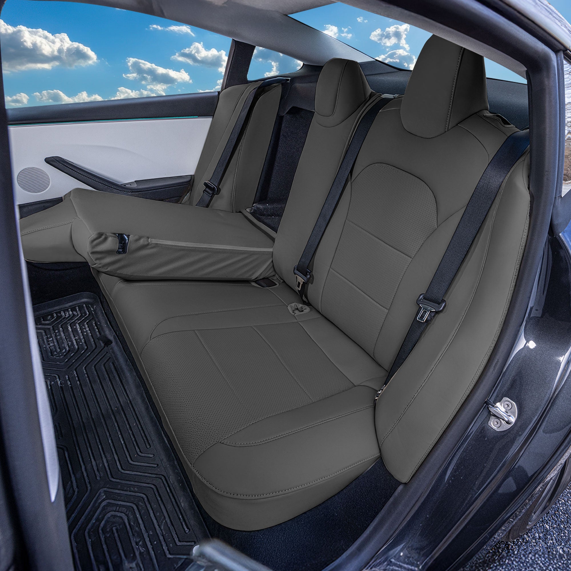 Protect the rear seats of your Tesla Model 3 2024–2026 with custom-fit Faux Leather rear seat covers designed for durability and easy upkeep. Rear seats often collect wear from passengers, backpacks, groceries, and items sliding during daily driving. Faux leather helps shield the original upholstery from stains and scuffs while maintaining a clean, modern appearance that matches the rest of the cabin.