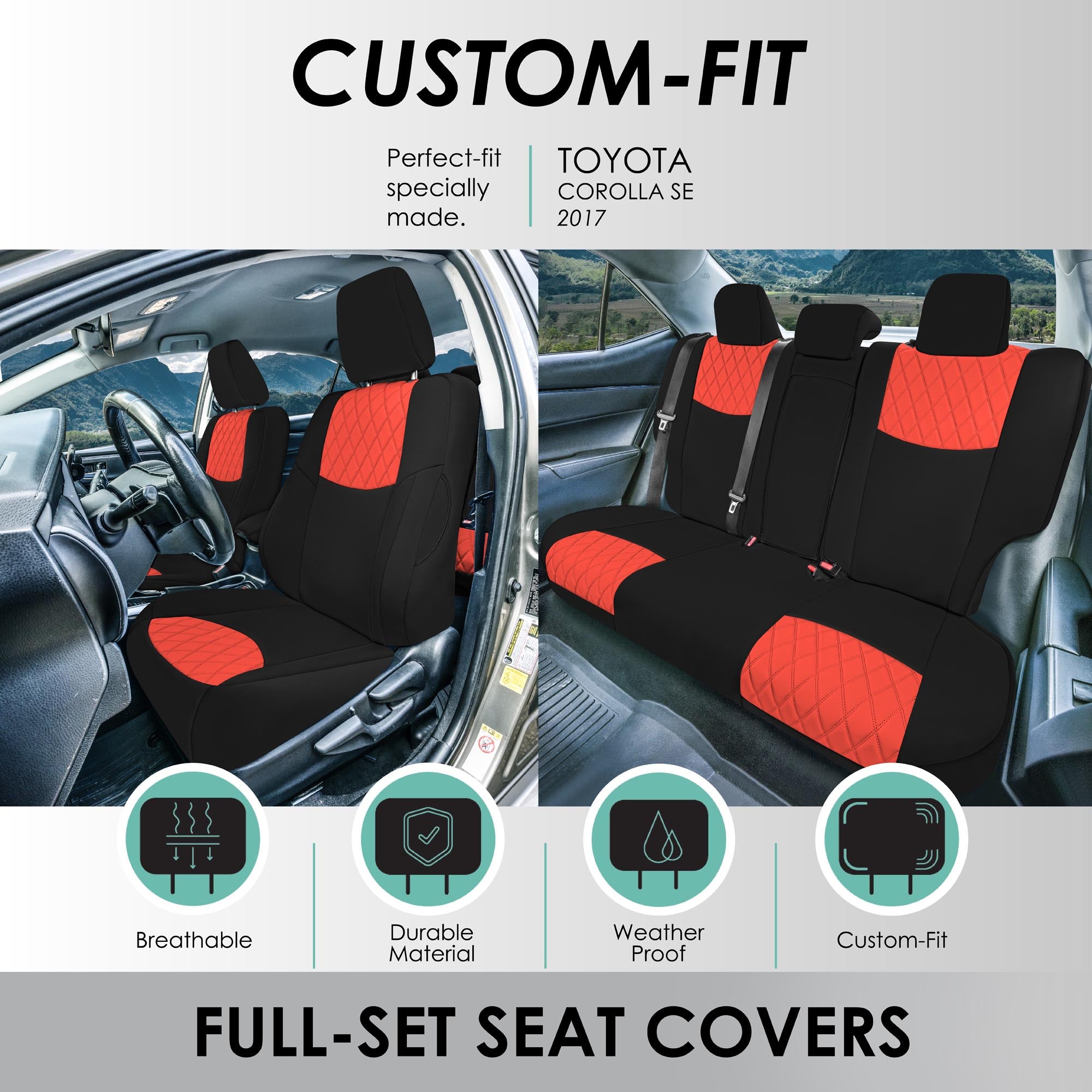 WIDE COLOR SELECTION: Available in seven colors including beige, black, blue, gray, red, solid beige, and solid gray, these seat covers for Toyota Corolla provide options to match or complement the interior color scheme of your sedan.