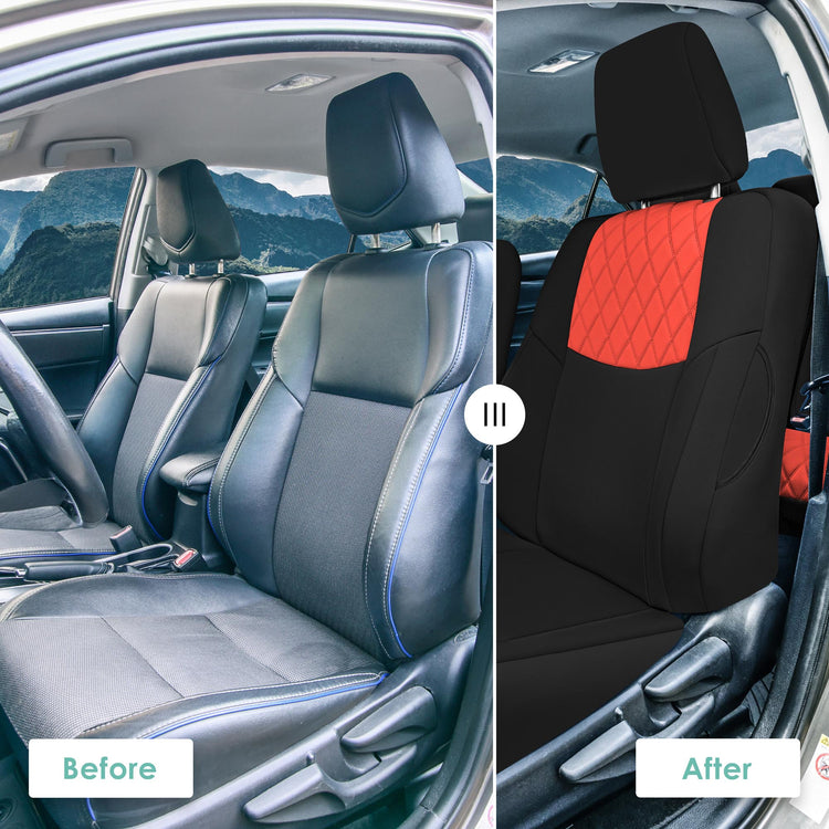 FH Group’s new custom fit seat covers for Toyota Corolla redefine comfort and style with the Ultraflex Neoprene. Made out of 4 layers of material (spandex, rubber, foam and mesh), the Ultraflex Neoprene makes these seat covers waterproof, comfortable and stretchy for a seamless snug fit. With the brand’s meticulous attention to detail, you can trust that every aspect of your Corolla's interior remains intact, including its safety features, such as its airbag compatibility. The seat covers are also available in seven vibrant colors, so there's a shade to suit every taste and interior palette. Whether you prefer classic black, sleek gray, or a pop of vibrant red, FH Group has you covered.