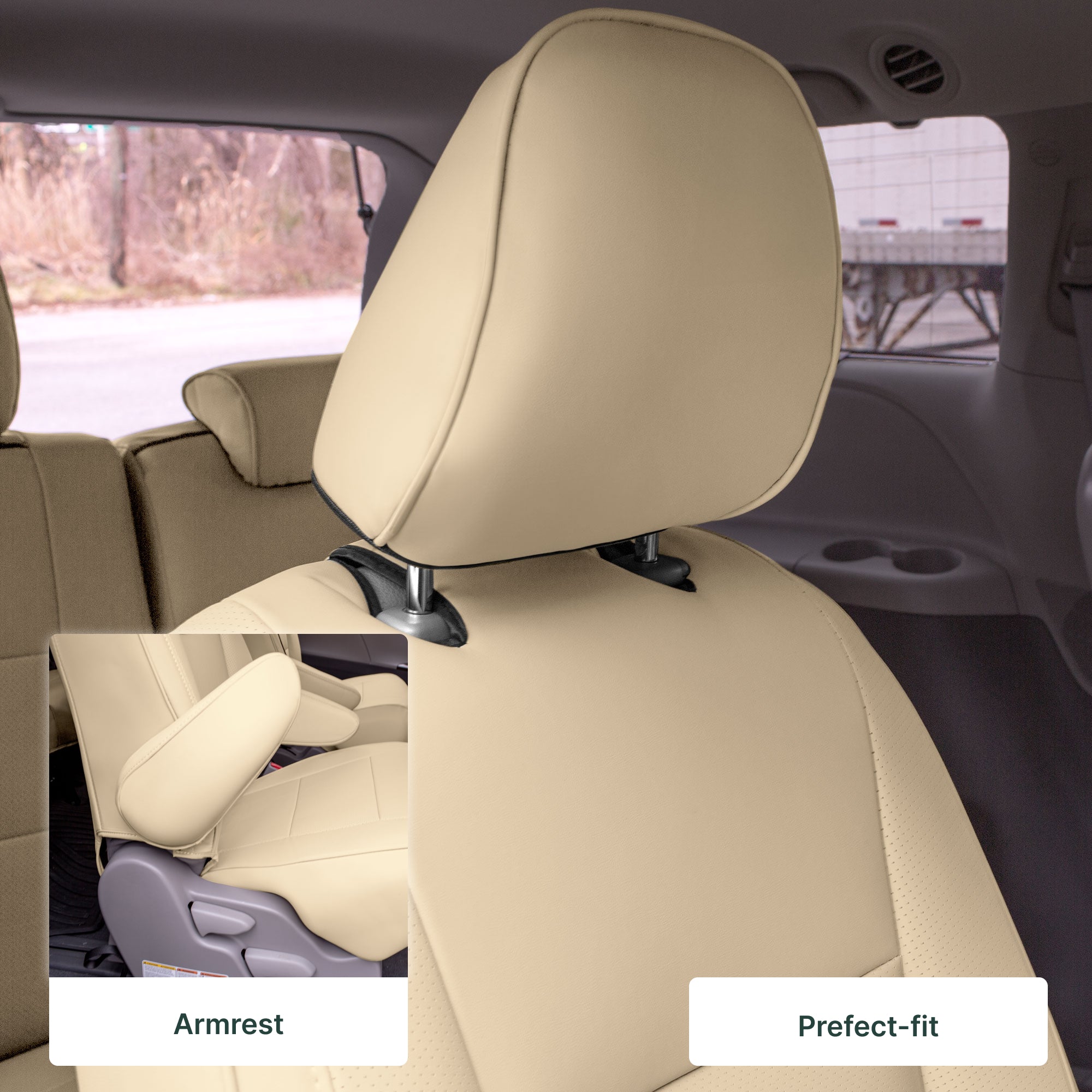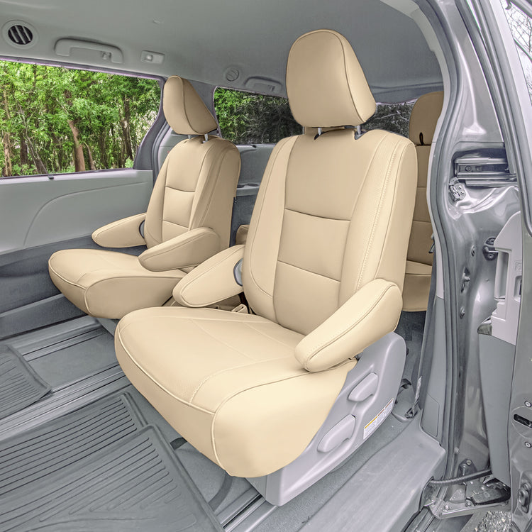 Toyota Sienna 7 Passenger - 2021 - 2024 - 2nd Row Set Seat Covers - Solid Beige Faux Leather