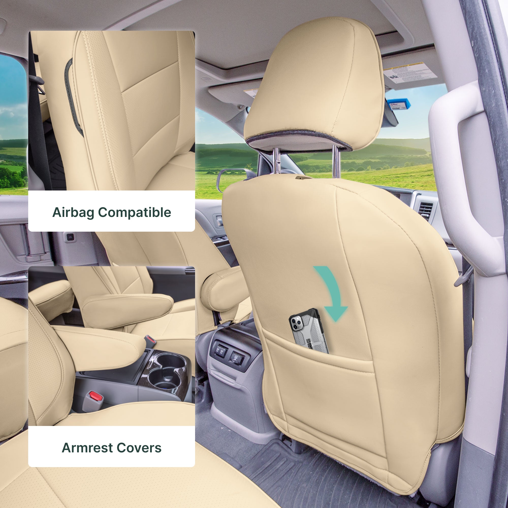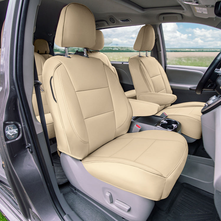 Toyota Sienna 7 Passenger - 2021 - 2024 - Full Set Seat Covers - Solid Beige Faux Leather